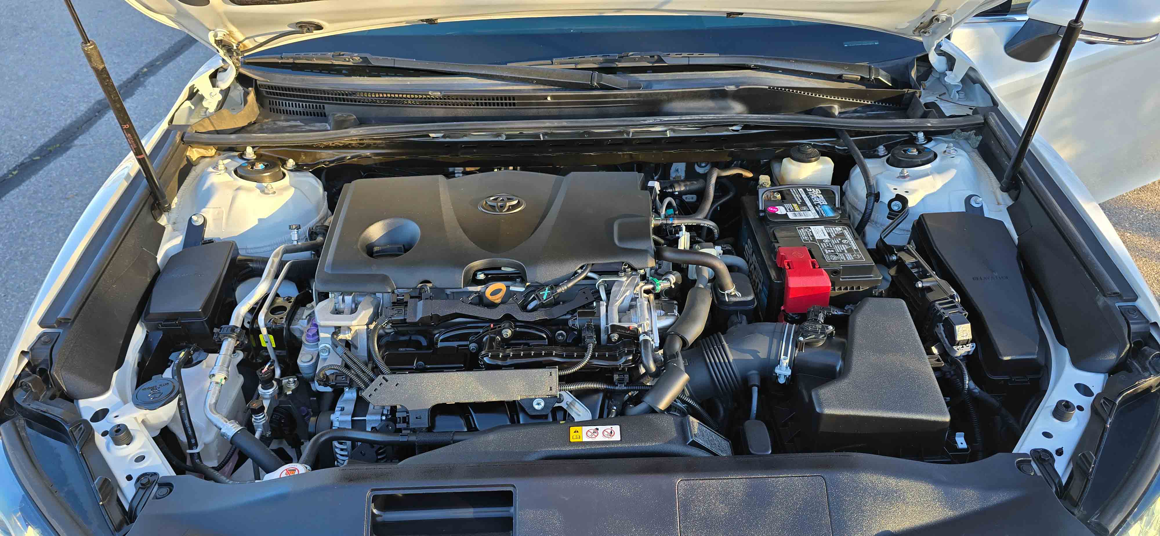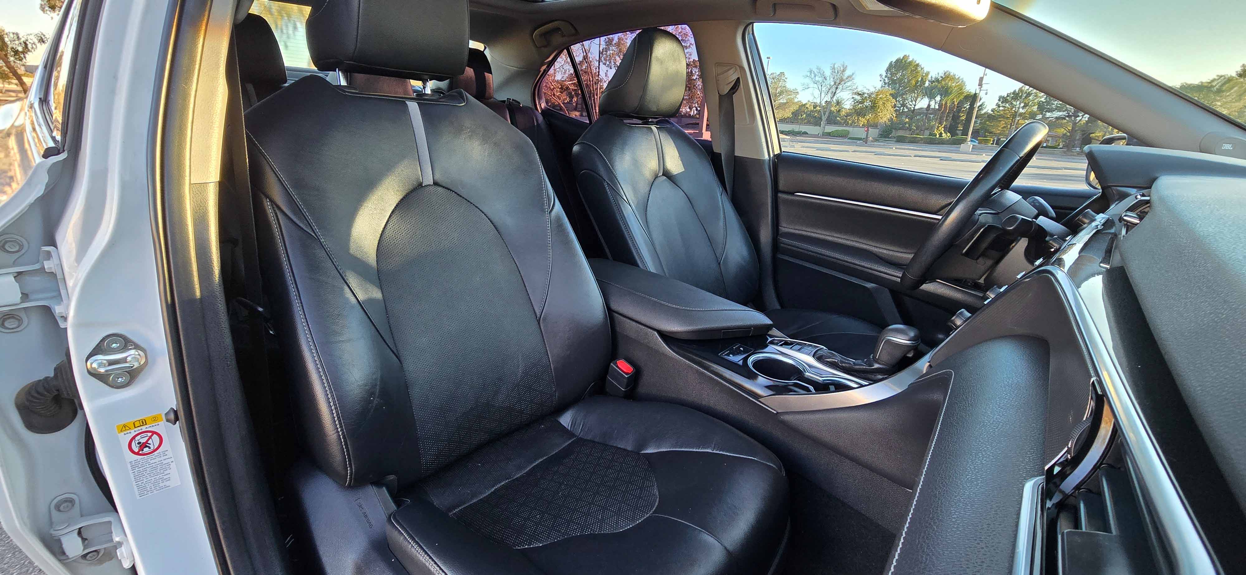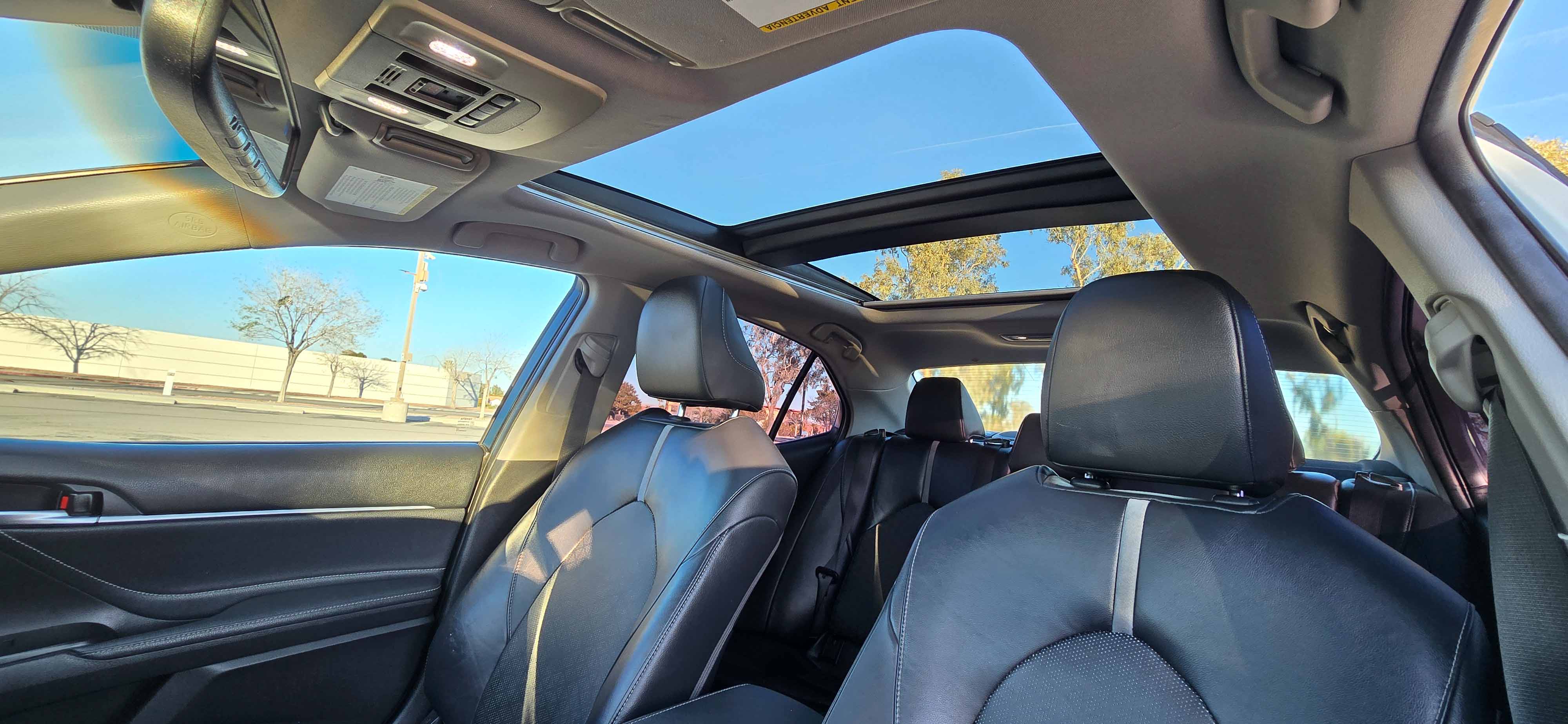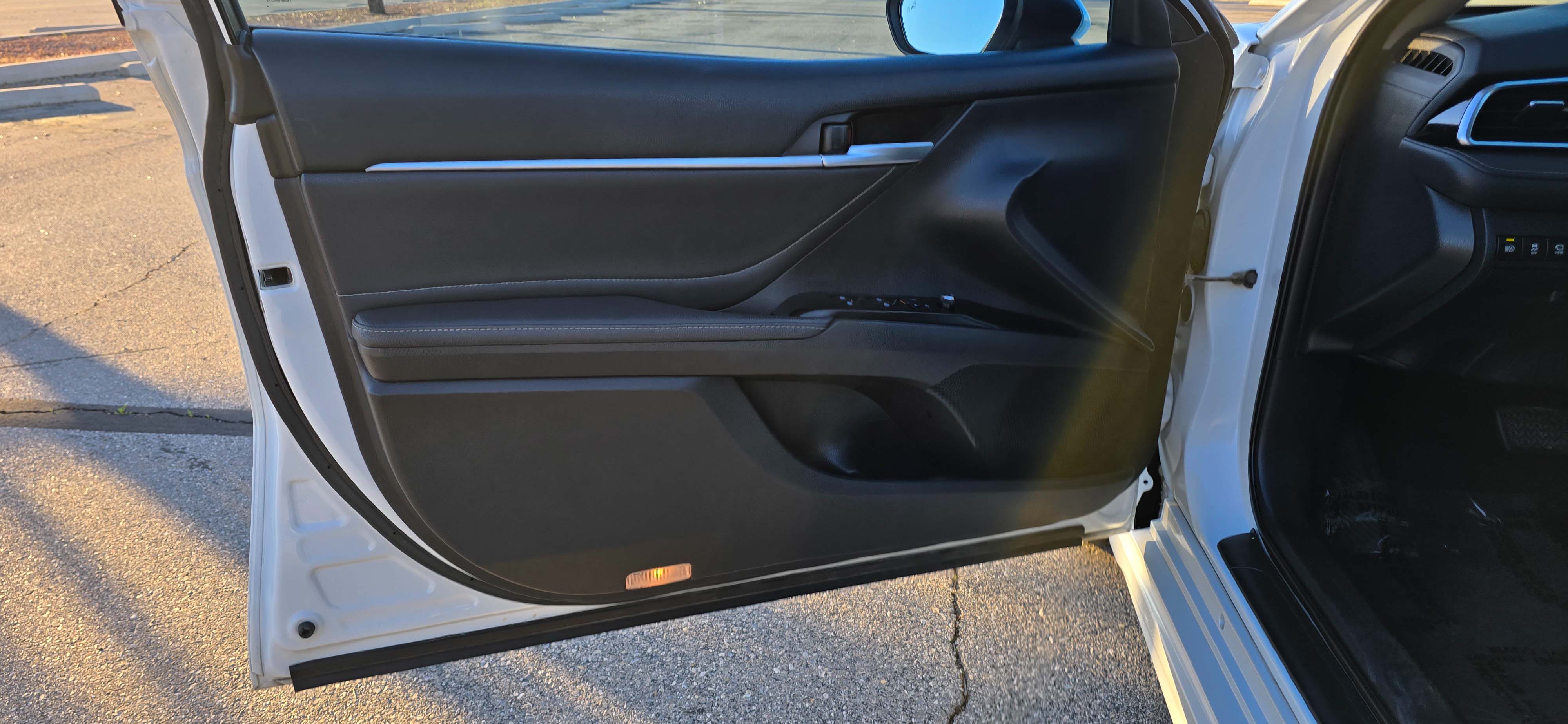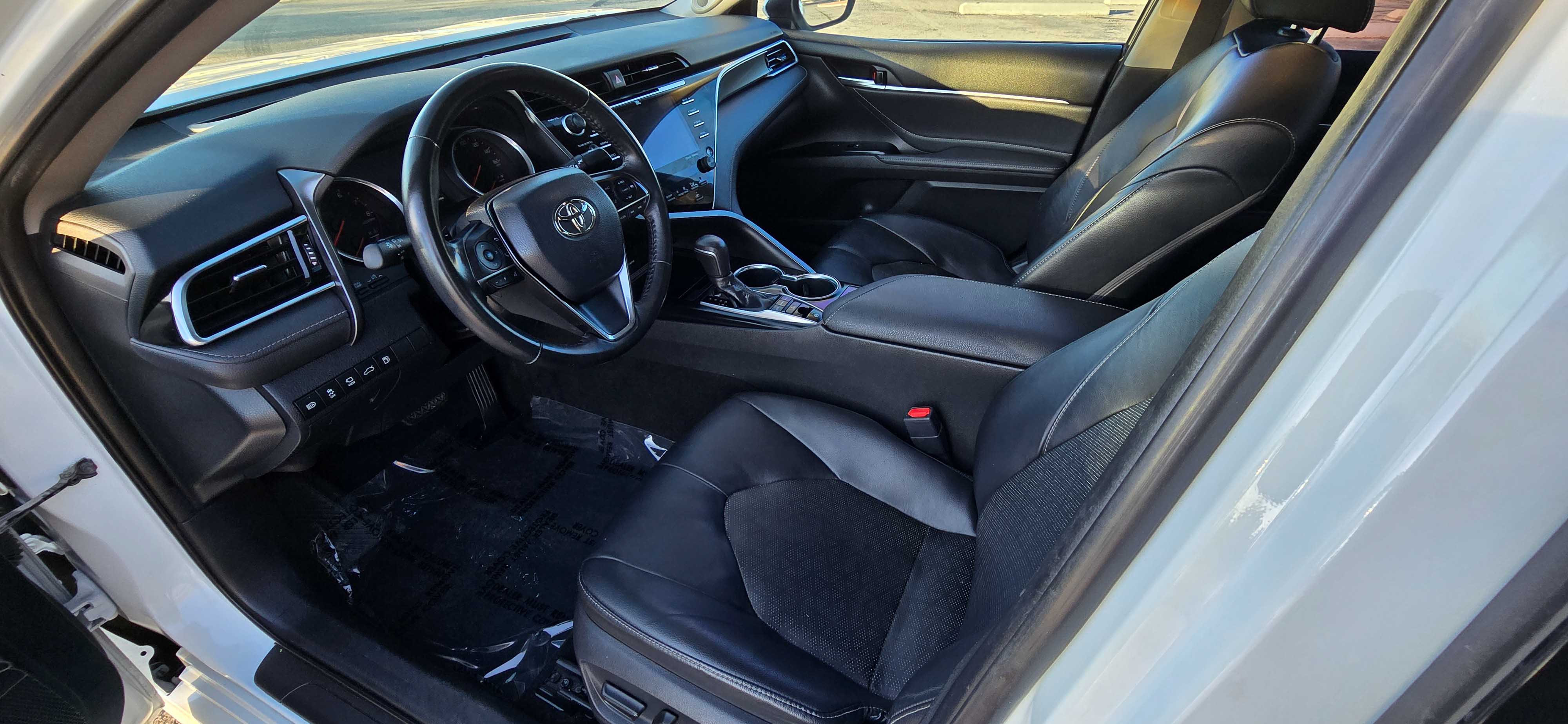 Sporty, luxurious, and packed with technology — this 2018 Toyota Camry XSE is the top-tier trim that blends performance styling with premium features. With its sleek white exterior, black interior, and full panoramic glass roof, this Camry looks just as good as it drives. Low miles and loaded with options make this one a standout.